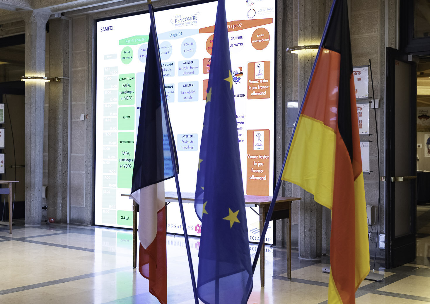 Der Beitrag des zivilgesellschaftlichen Engagements für die weitere Entwicklung der deutsch-franazösischen Beziehungen wurde in vier Podiumsdiskussionen erörtert, jeweils von Journalisten kompetent moderiert. Den Anfang machte am Samstagvormittag die „table ronde“ zur Frage der Vision von Europa und was das Weimarer Dreieck dazu beitragen könne, also das deutsch-französisch-polnische Format, das ein wenig in den Hintergrund geraten war. Neben unserem VDFG-Vorstandsmitglied Dieter Hackmann, der auch Vorsitzender des „Weimarer-Dreieck-Vereins“ ist, erläuterten der Abgeordnete Frédéric Petit, der die Auslandsfranzosen in Mitteleuropa, incl. Deutschland und Polen, vertritt und auch in Polen residiert, der Leiter des „Büro II“ der deutschen Kulturbeauftragten für die bilaterale Kooperation, Dr. Deniz Alkan aus der Staatskanzlei des Saarlandes, sowie Paul Maurice, der Deutschland-Experte des Pariser Instituts für Auslandsbeziehungen (IFRI) die Initiativen und Beiträge, die die vielen Vereine und Forschenden zur Entwicklung von Visionen für Europa leisten. Davon leben auch politische Entscheidungsträger, die, wie der Abgeordnete Petit, auf gut vorbereitete Anstöße aus der Zivilgesellschaft angewiesen sind, wenn sie deren Anliegen zu politischer Wirksamkeit verhelfen wollen.