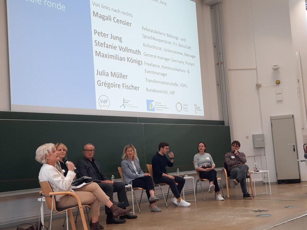Auch die intergenerationelle Zusammenarbeit und explizite Ansprache junger Menschen stand im Vordergrund der Arbeit der Transformationsstelle: An der HU Berlin sowie der Universität Passau fanden zwei Workshops zu den deutsch-französischen Engagement-Möglichkeiten statt. Auf der Zukunftsmesse Nord in Bremen stellte die Projektbeauftragte im Rahmen zweier Inputvorträge und einer Podiumsdiskussion zudem die vielfältigen Chancen und Mitwirkungsmöglichkeiten des Franco-Allemands vor.